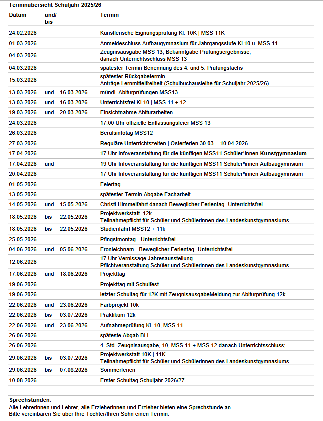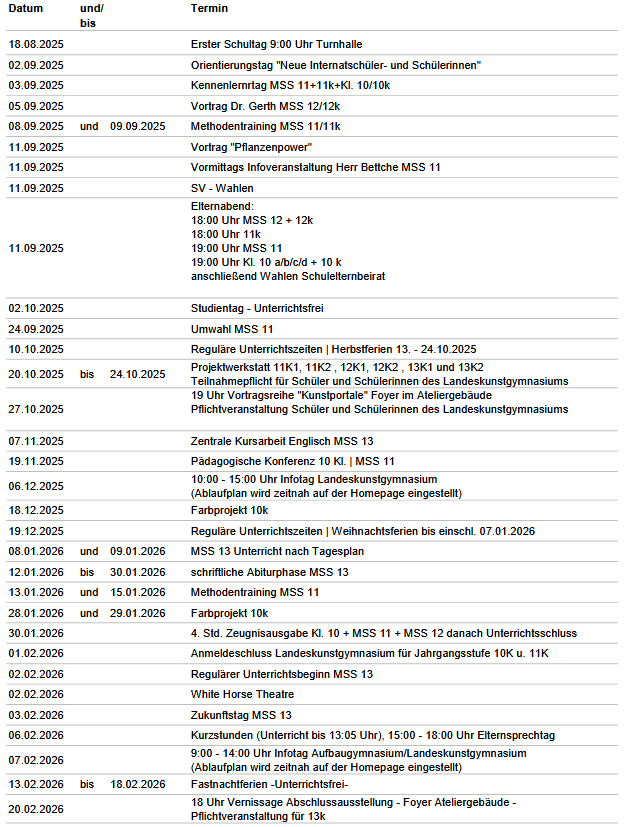 Hier findest du für das neue Schuljahr 2025/26 alle Daten, die für dich wichtig sind.